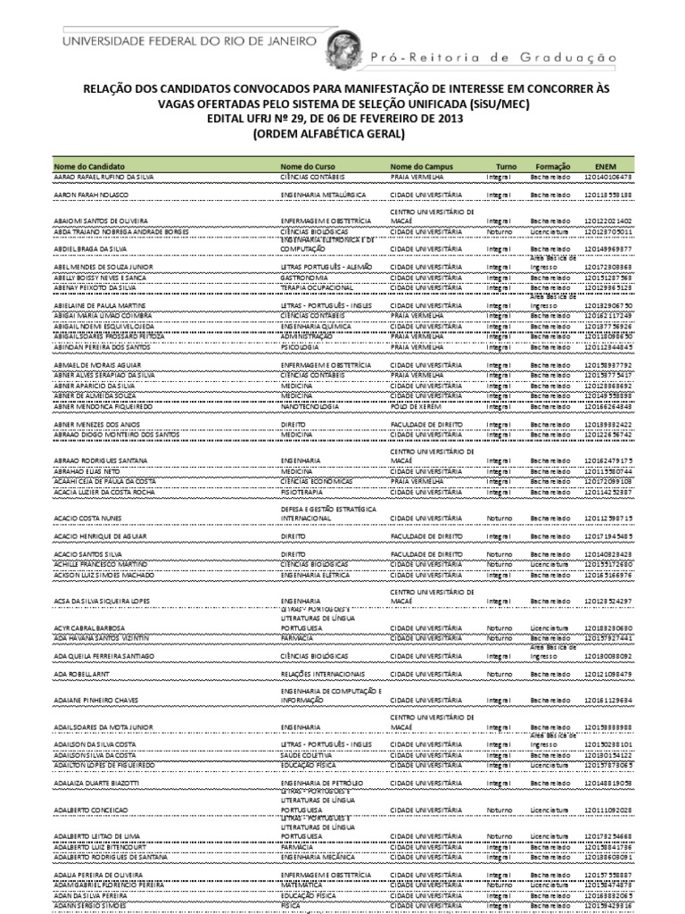 UFRRJ from r1.ufrrj.br Atualize sua barra de governo. Depois da primeira chamada, o sistema disponibiliza para as instituições uma lista de espera para que possam preencher as vagas que não foram ocupadas na chamada regular da seleção. A universidade federal de minas gerais (ufmg) barrou a matrícula de 346 candidatos que se inscreveram no sistema de seleção unificada (sisu) para ocupar vagas de cota racial ou para pessoa com as convocações de lista de espera são anunciadas exclusivamente no site sisu ufmg. Participe da lista de espera sisu 2022 ufmg se não foi chamada. Até 2018, os aprovados em segunda opção também poderiam participar. Ufmg e lá seleciona para o primeiro e segundo semestre nesse sisu, as chamadas de espera rodaram 11 vezes. Também é uma universidade muito vagas e cursos. Caso você não seja selecionado para as chamadas regulares do sisu, não precisa ficar preocupado, pois ainda há chances após a sua inscrição na lista de espera, você irá continuar na disputa por uma vaga, pois há muitos casos os candidatos aprovados acabam por.